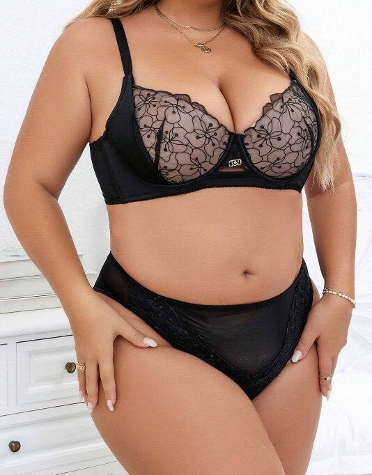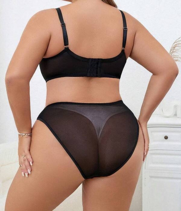 Spitzen Patchwork Dessous Set Schwarz in 2XL, BH 95D