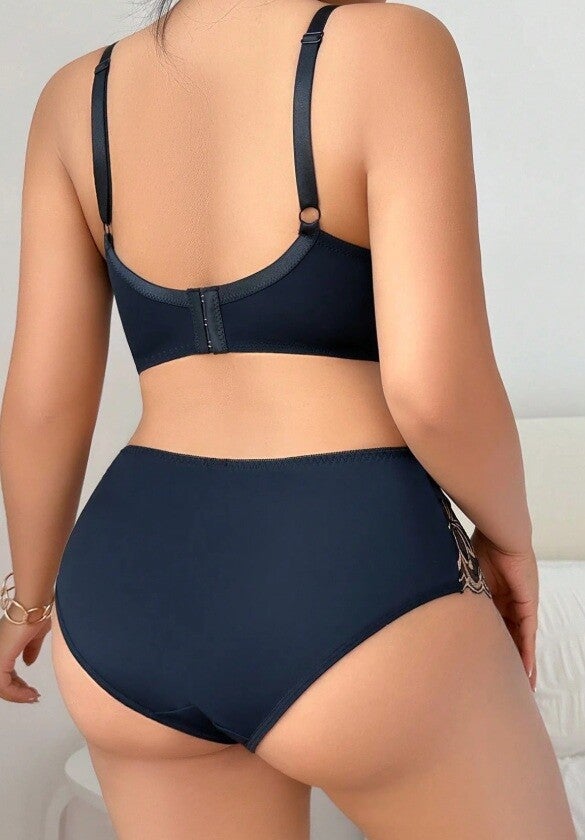 Damen Unterwäsche Set mit Spitze Dunkelblau 100D
