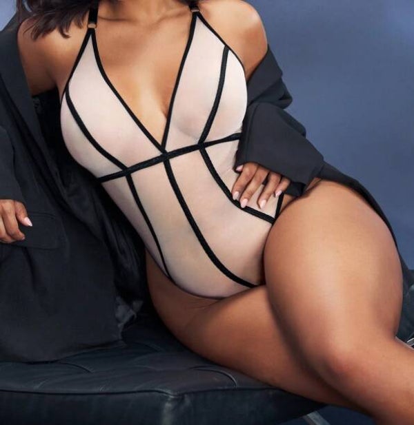 Damen Body mit Kontrastfarbigen Saum, Durchsichtig in 2XL