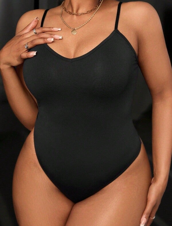 Figurbetonter ärmelloser Body, Bodysuit Schwarz in 3XL