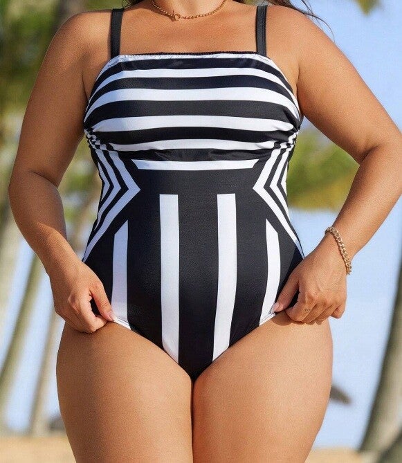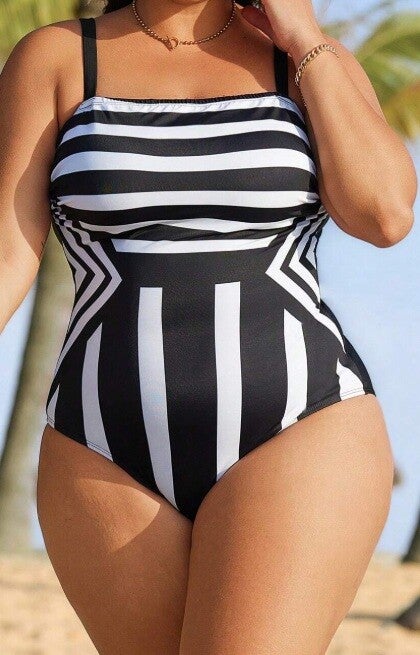 Damen Badeanzug Schwarz Weiss gestreift in 3XL