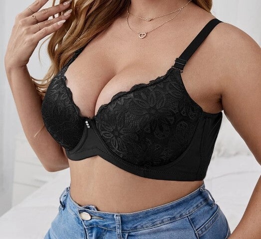 BH mit Kontrast Spitzen, Bügel Schwarz in 100D