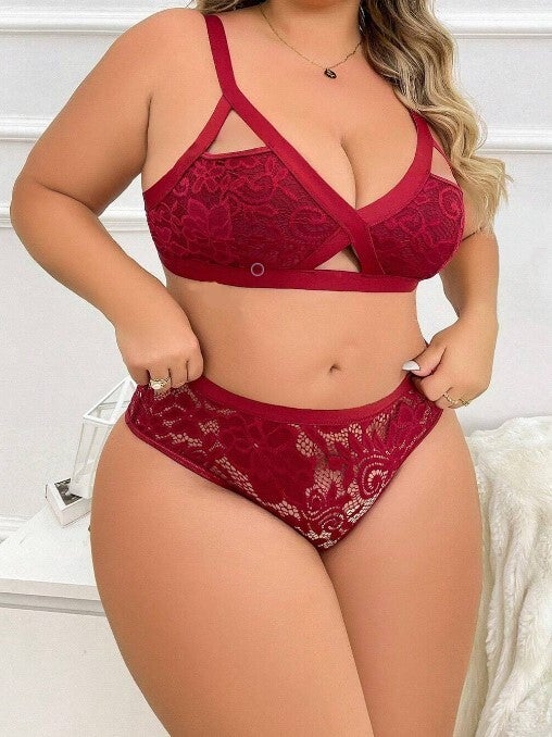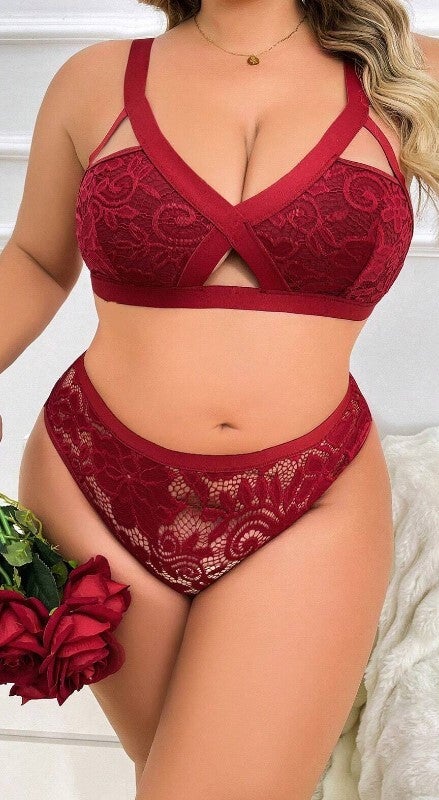 Damen Wäsche Set mit Spitze, Bordeaux in 2XL