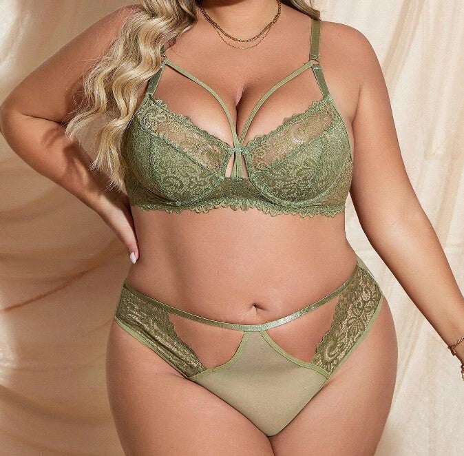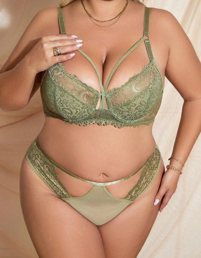 Damen Wäsche Dessous Set, Bügel, Spitze, Grün in 2XL