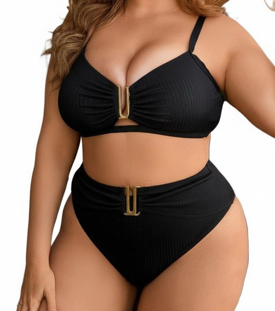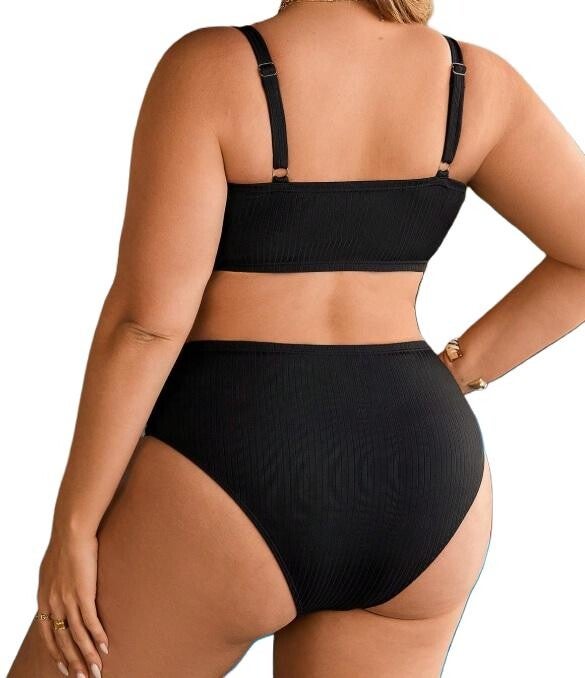 🖤 Elegante Kurven: Der Black Ribbed High-Waist Bikini
