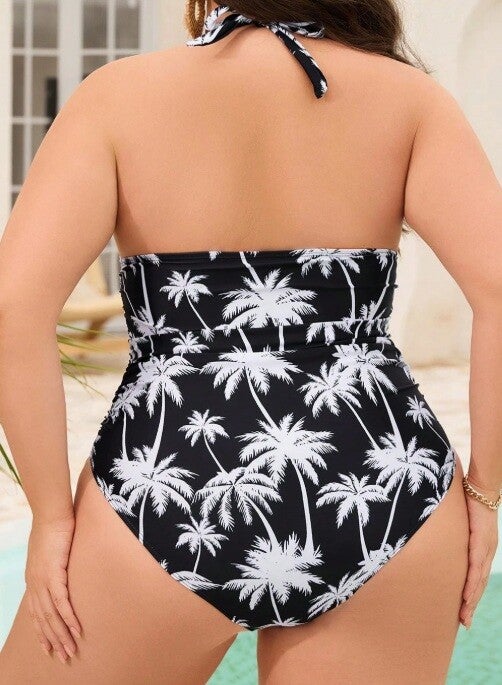 🌴 Bohemian Neckholder Badeanzug mit Palmen-Print