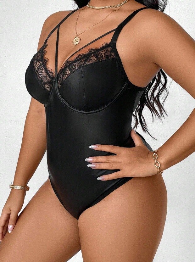 Verführerischer Camisole-Body in Leder-Optik mit Spitzen-Detail
