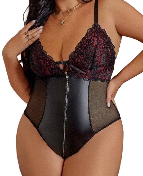 🖤 Verführerischer Body mit Spitze und Reißverschluss
