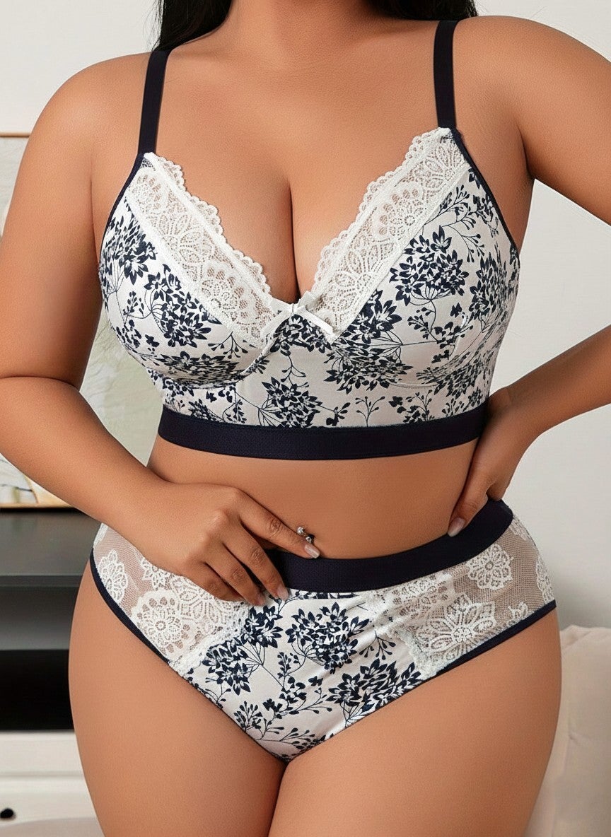 Damen Wäsche Set mit Blumen Muster in 2XL